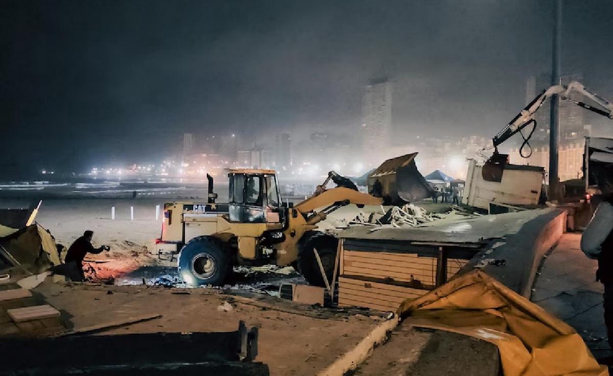 Un operativo de fuerzas federales desmanteló más de 170 puestos en Playa Bristol por denuncias de "ilegalidad, riesgos sanitarios y venta irregular".