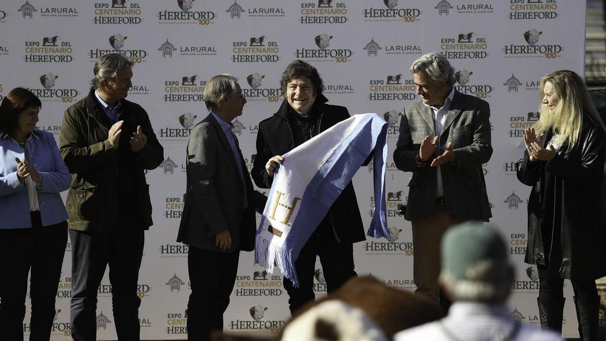 La presencia de Milei en la Exposición del Centenario de la Asociación Criadores de Hereford, que se inició el miércoles último y culminará este sábado, fue una señal de respaldo al sector agropecuario en medio de la discusión sobre la necesidad del Gobierno de mantener el "déficit cero".