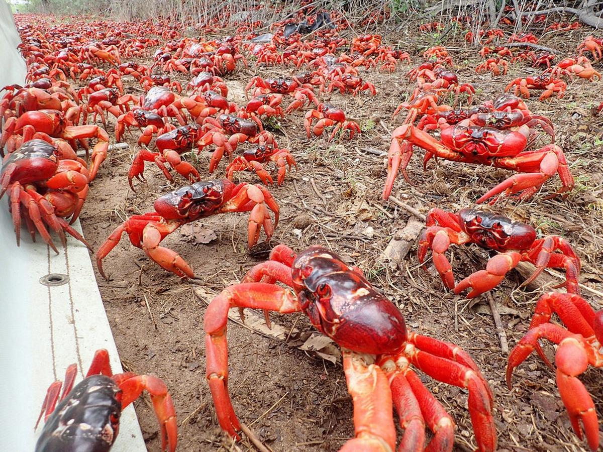 Cada año, entre octubre y diciembre, entre 50 y 100 millones de cangrejos rojos migran en la Isla de Navidad.