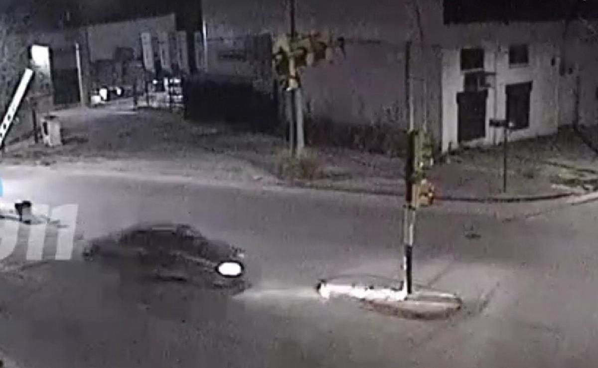 Video. Perdió el control, impactó violentamente contra un semáforo y salió caminando
