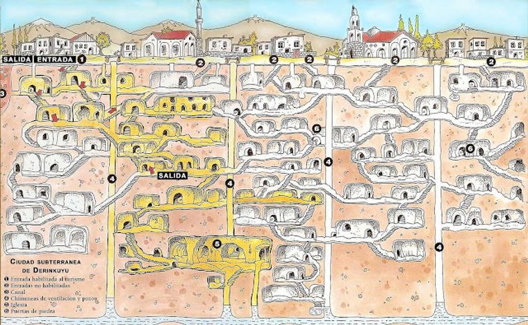 Un turco tropezó con la antigua de ciudad Elengubu, hoy conocida como Derinkuyu. La construcción subterránea, que pudo albergar hasta 20 mil personas, es una muestra sorprendente de la ingeniería antigua.