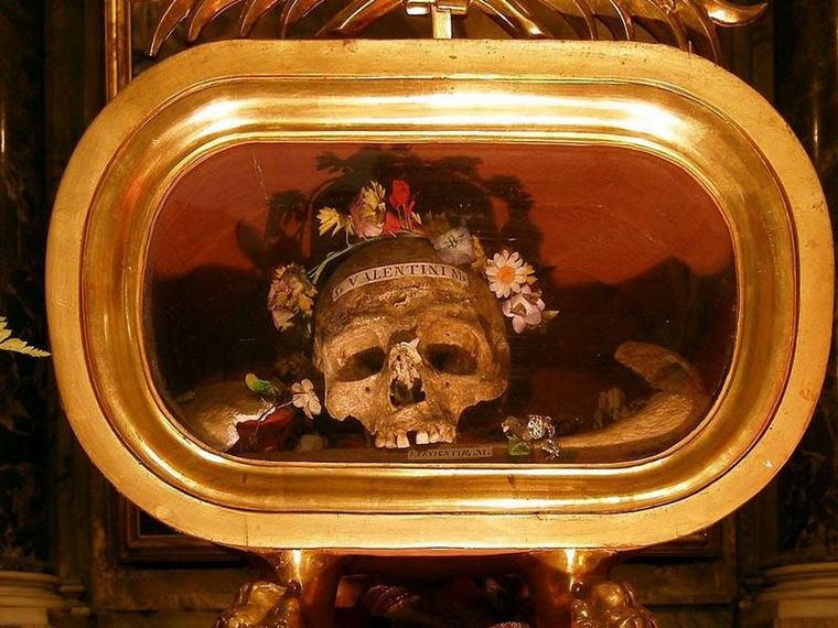 Si bien no hay pruebas documentales sobre esta historia, se dice que el cráneo de Valentinus se encuentra perfectamente conservado en la iglesia de Terni.