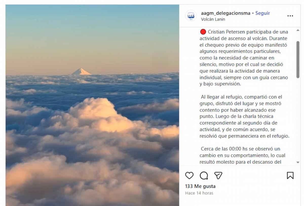 La Asociación Argentina de Guías de Montaña emitió un comunicado oficial con detalles sobre el trekking al Lanín, del que participó el chef.