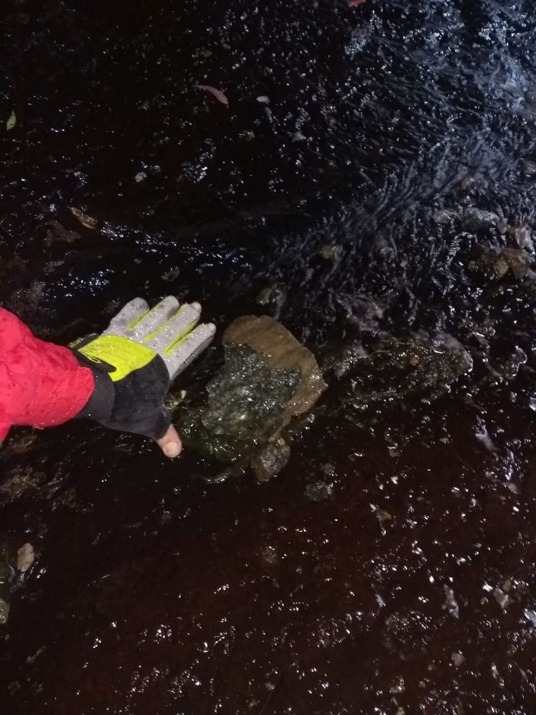 Para la tarea se recorrieron 45 metros en plano vertical desde el Coronamiento del Paredón del Dique hasta la desembocadura del vertedero, lugar donde se encontró una piedra de características similares a las que se observa en la filmación.