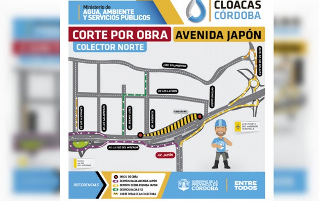 Los trabajos obligan a redireccionar el tránsito para acceder a avenida Japón o a barrio Los Bulevares desde el Aeropuerto; y para ingresar al mencionado barrio desde la zona norte. Los detalles.