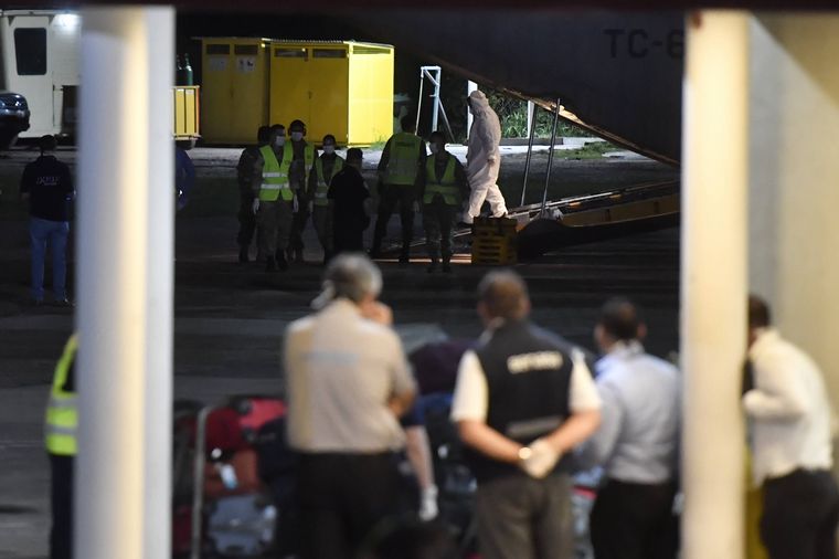 Los vuelos, de más de seis horas de viaje, y que llegaron con pocos minutos de diferencia, a las 20,28 y 20,50, trajeron a 70 pasajeros cada uno, y fueron recibidos por el ministro de Defensa, Agustín Rossi; el jefe del Estado mayor del Fuerza Aérea, Xavier Isaac, y el jefe del Estado Mayor Conjunto, Juan Martín Paleo.