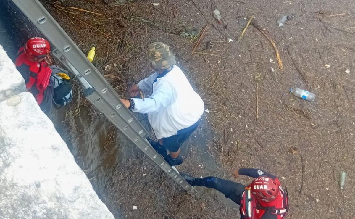 Según informó la Policía, los rescatistas asistieron a dos personas de 59 y 35 años que se encontraban en situación de calle y que no lograban salir del lugar por sus propios medios tras el aumento del caudal del río.