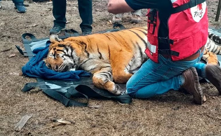 Rescataron a dos tigres de bengala que vivían en cautiverio en Buenos Aires