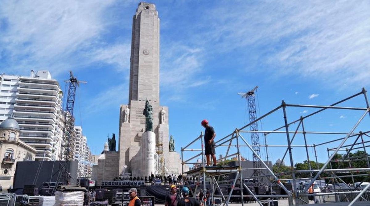 Espectáculos. Ya preparan el escenario para el show histórico de Fito Páez en el Monumento