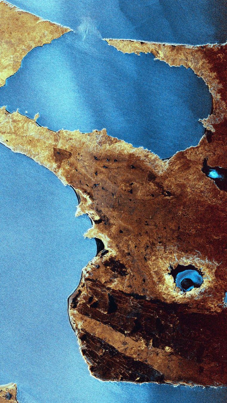 "Hacia el Sur de la península, pueden observarse dos franjas oscuras que se corresponden con la erosión eólica del terreno, producida por dunas de arena que se desplazan por acción de los vientos", precisaron.