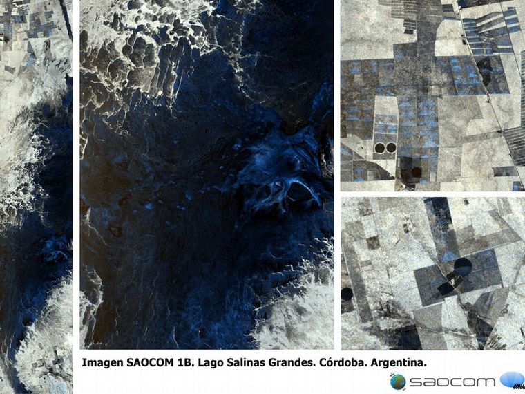 "En esta superficie, el poder de penetración del radar SAR permite detectar el contenido de agua de la Salina Grande al Sur y del Salitral al Norte -en la superficie como dentro de la capa salina- que en la imagen se ve en tonos azulados", remarcaron.