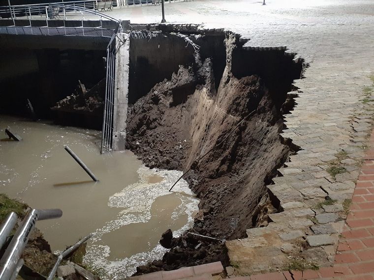 Ocurrió este viernes por la tarde. La caída de la estructura perjudicó una franja de 15 metros de largo y 10 de profundidad en el Parque España. Adjudican el hecho a la fuerte bajante del río Paraná. Video.