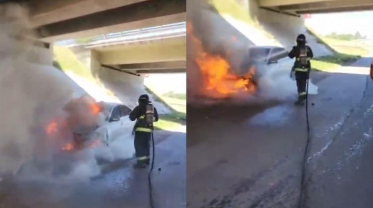 ¿Qué ocurrió? Un automóvil se incendió en la intersección de la autopista Rosario–Buenos Aires y avenida Circunvalación.