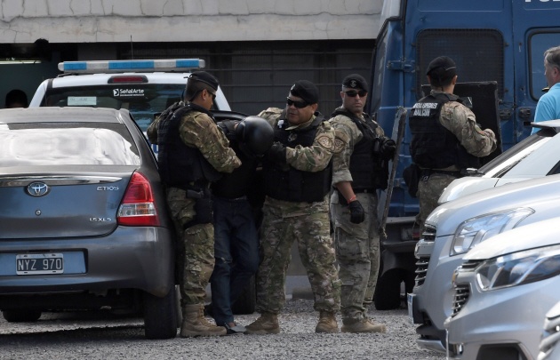 El acusado fue llevado en un auto particular con doble custodia desde la comisaría en la que pasó la noche, situada en el distrito de Merlo, y fue ingresado a la sede judicial por una puerta trasera pocos minutos antes de las 9.