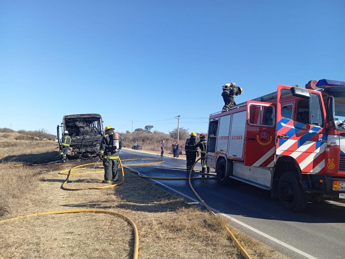 Un colectivo interurbano de la línea Sarmiento se prendió fuego en la ruta provincial C45, que conecta Alta Gracia con Carlos Paz.