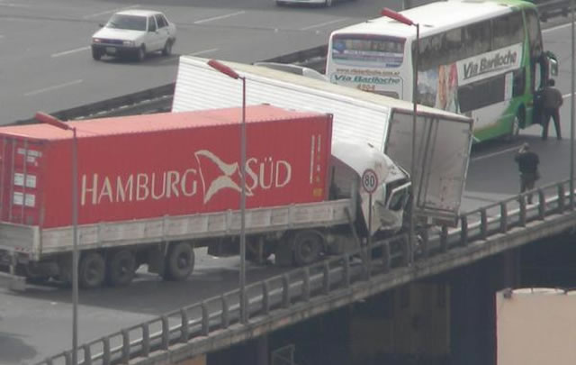 La colisión ocurrió poco antes de las 11 e involucró a dos camiones, un micro de larga distancia y un auto que circulaban en sentido al Río de la Plata.