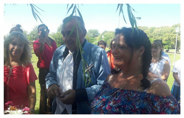 Roxana Beatriz López y Raúl Gustavo Peretti se casaron este miércoles en la plaza de Estación Juárez Celman, frente a la municipalidad, en una ceremonia que vio a todos vestidos de gauchos, incluida la intendenta, quien la presidió.