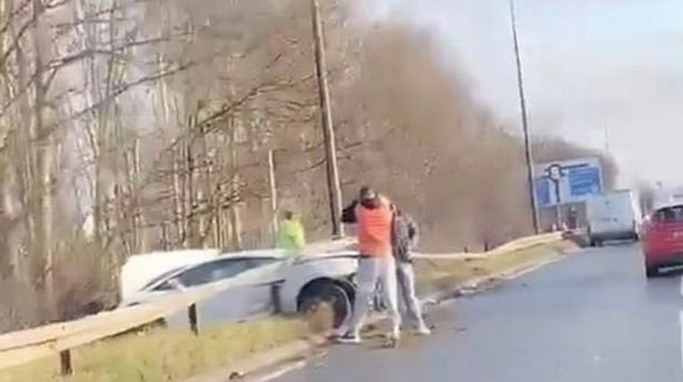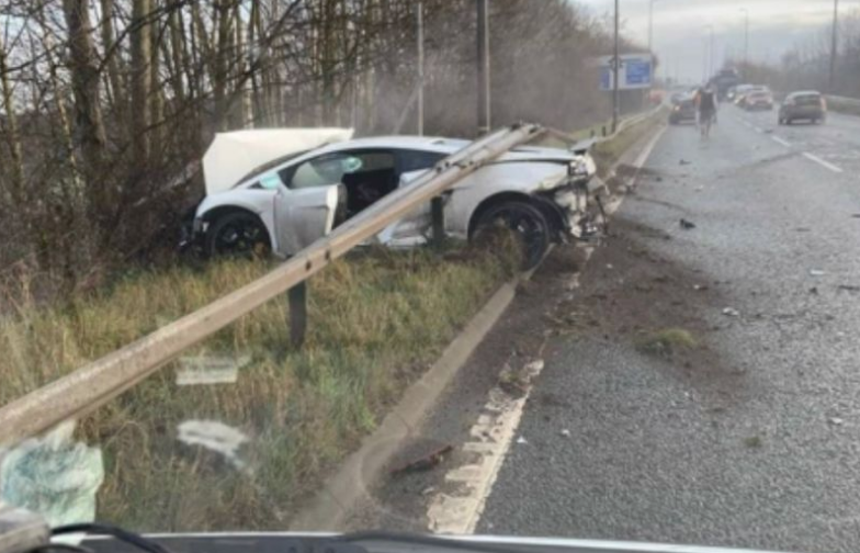Las imágenes muestran que el Lamborghini de 117 mil libras (unos 220 mil dólares) se estrelló, cruzó el guardarraíl de la ruta y quedó destruido.