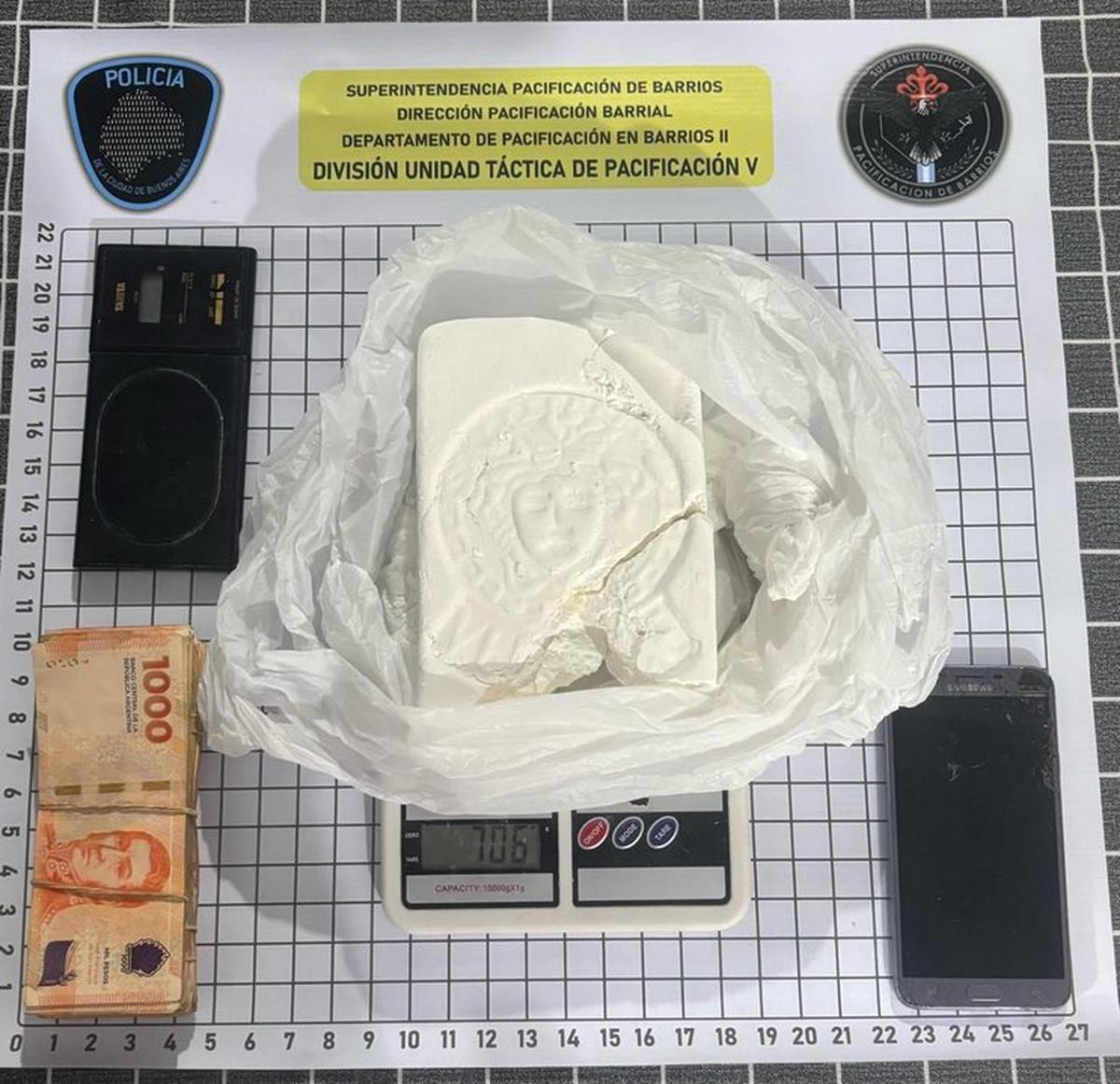 Las autoridades explicaron que dentro del domicilio se halló un ladrillo de cocaína de aproximadamente 700 gramos, con el sello de "Medusa", además de envoltorios listos para la venta, pasta base, balanzas de precisión y elementos utilizados para el fraccionamiento de la sustancia.