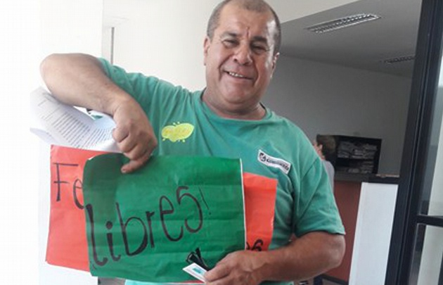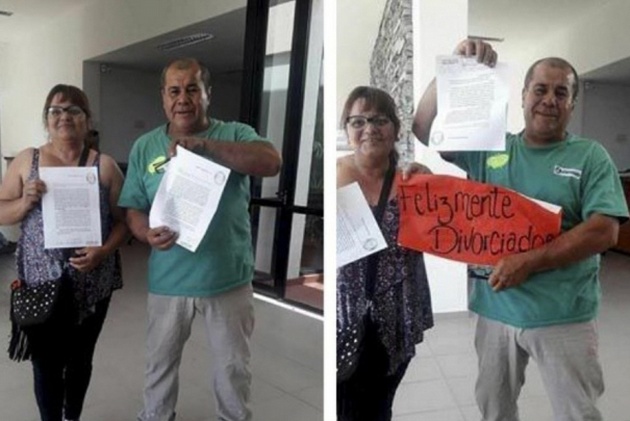 "Felizmente divorciados y libres”, expresaba una de las pancartas que sostenían los dos protagonistas de la celebración.