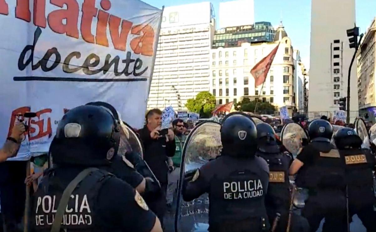 Tensión en el Obelisco: incidentes entre manifestantes y la Policía