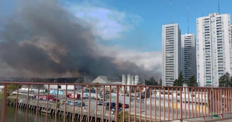 Un incendio de grandes proporciones afecta desde la mañana de este lunes a dos fábricas en la localidad bonaerense de Dock Sud, en el partido de Avellaneda.