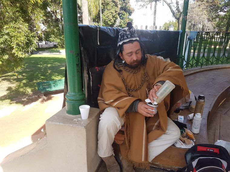 Santiago Cocilobo lleva más de 24 horas encadenado en la glorieta de la Plaza 9 de Julio del centro de la ciudad de Salta.