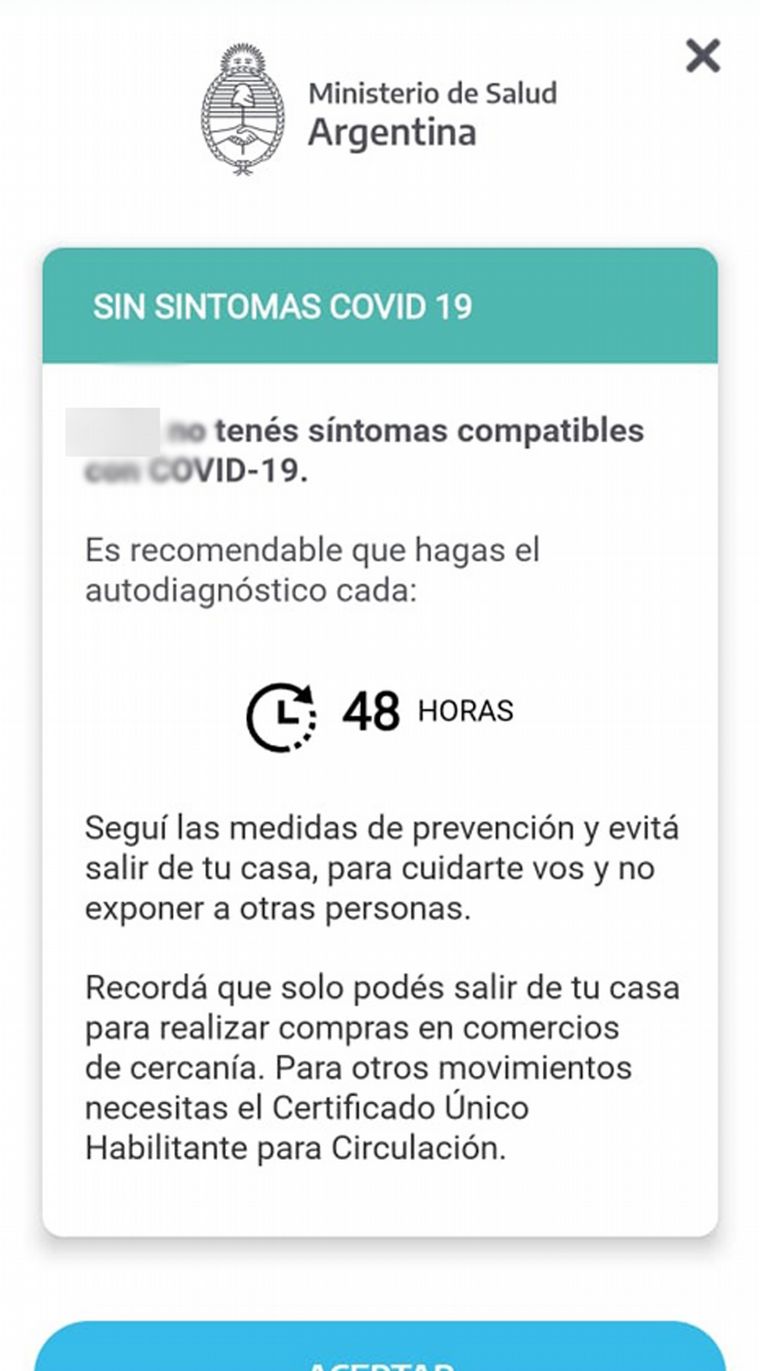 El Presidente explicó que la aplicación permite realizar un "autocontrol" sanitario. El resultado reportado por esa vía tendrá valor de declaración jurada. Descargala aquí.