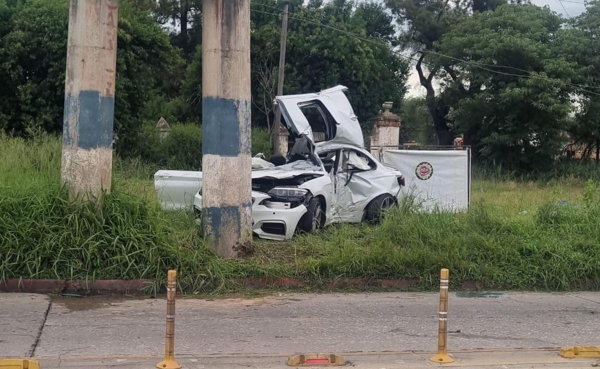 ¿Cómo sucedió el accidente? Un BMW 240i colisionó contra un poste de hormigón de alta tensión.
