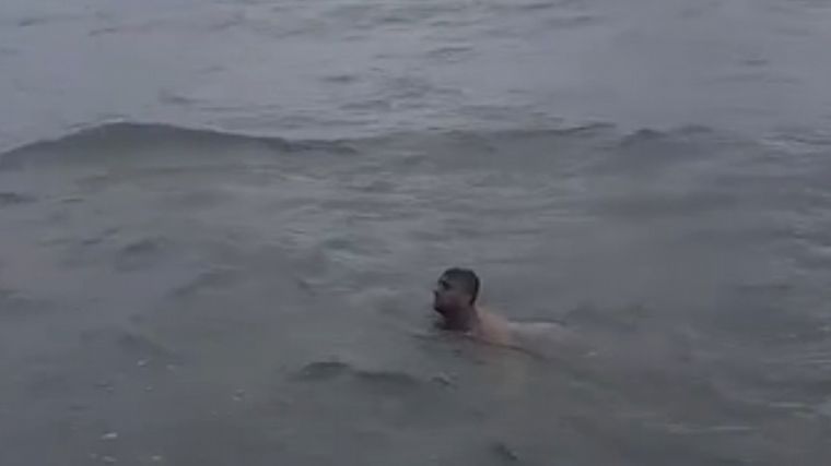 Aparentemente el hombre comenzó a nadar y fue arrastrado por las olas lejos de la orilla hasta que afortunadamente apareció el barco con turistas y le brindó socorro.