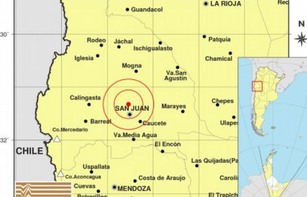 El epicentro se ubicó 21 kilómetros al norte de San Juan; 175 km al norte de Mendoza; 43 km al noroeste de Caucete.