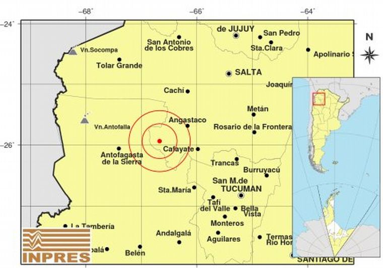 El sismo tuvo lugar a las 7:42, cerca de la localidad de Cafayate y a unos 177 kilómetros al sudoeste de Salta, y a 176 al noroeste de San Miguel de Tucumán, según precisó el Instituto Nacional de Prevención Sísmica (Inpres), que tiene sede en San Juan.