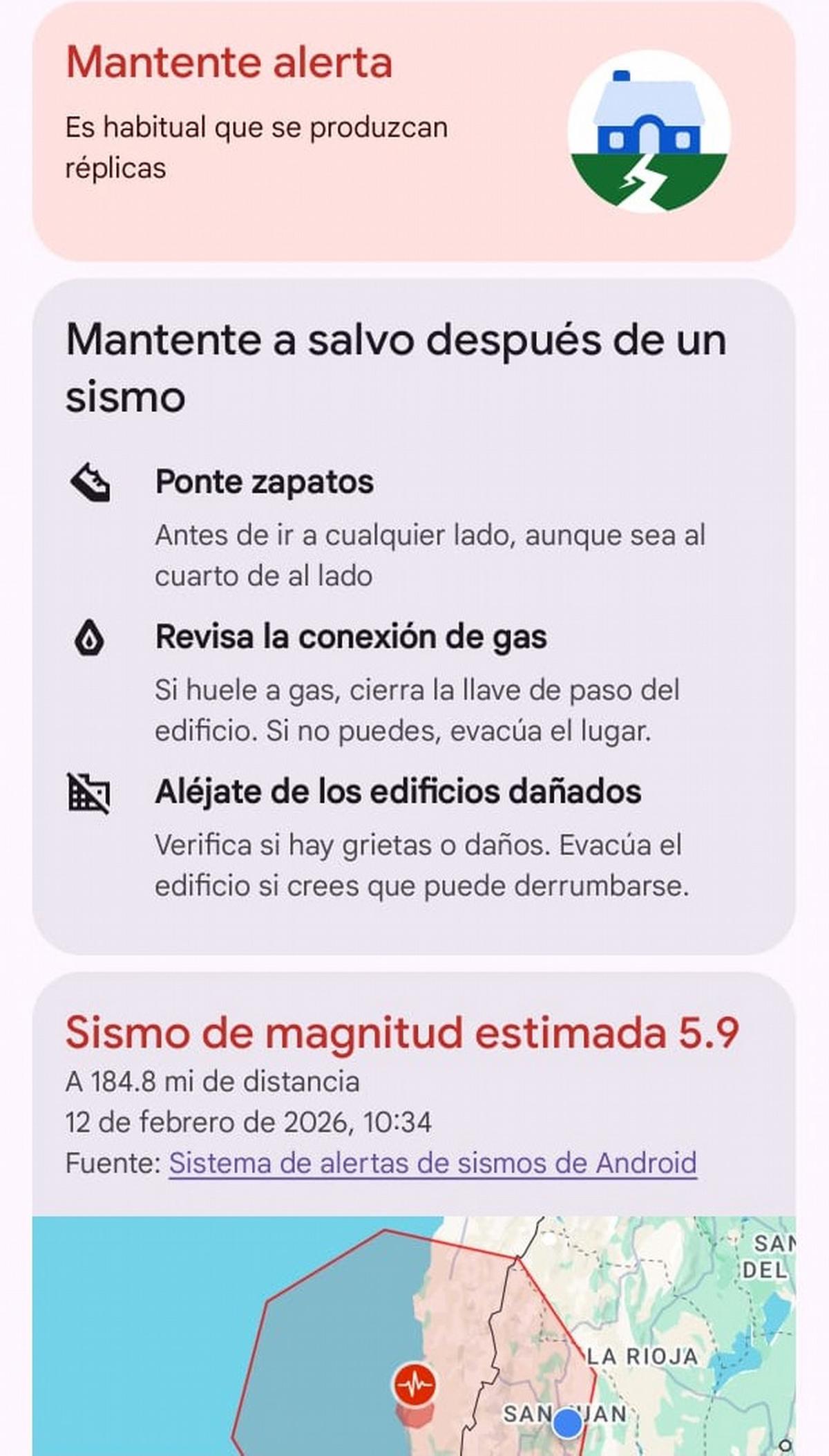 La notificación llegó en tiempo real e incluyó una estimación inicial de magnitud, además de recomendaciones de seguridad. El aviso estuvo disponible únicamente para dispositivos con sistema Android.