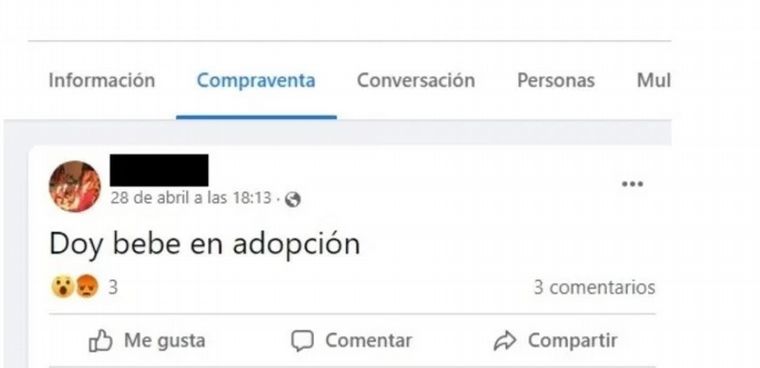 La denuncia fue realizada por una organización dedicada a la defensa de los derechos de la niñez. Allí manifestaron que en un grupo de Facebook se estaba ofreciendo la adopción de una bebé recién nacida a cambio de plata.