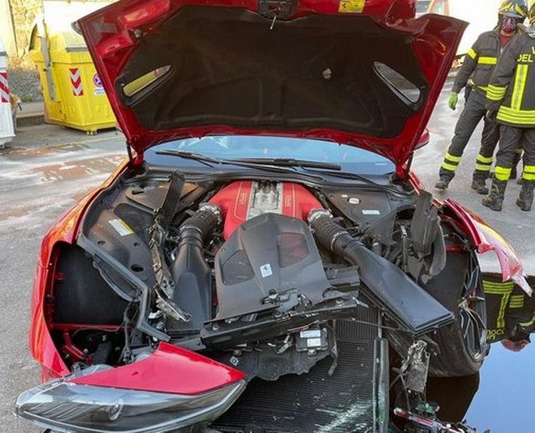 Los medios locales informaron que el conductor no pudo controlar el lujoso automóvil cuando tomó una curva previa al ascenso a la autopista y golpeó contra el guardrail destrozando todo el frente de la Ferrari.