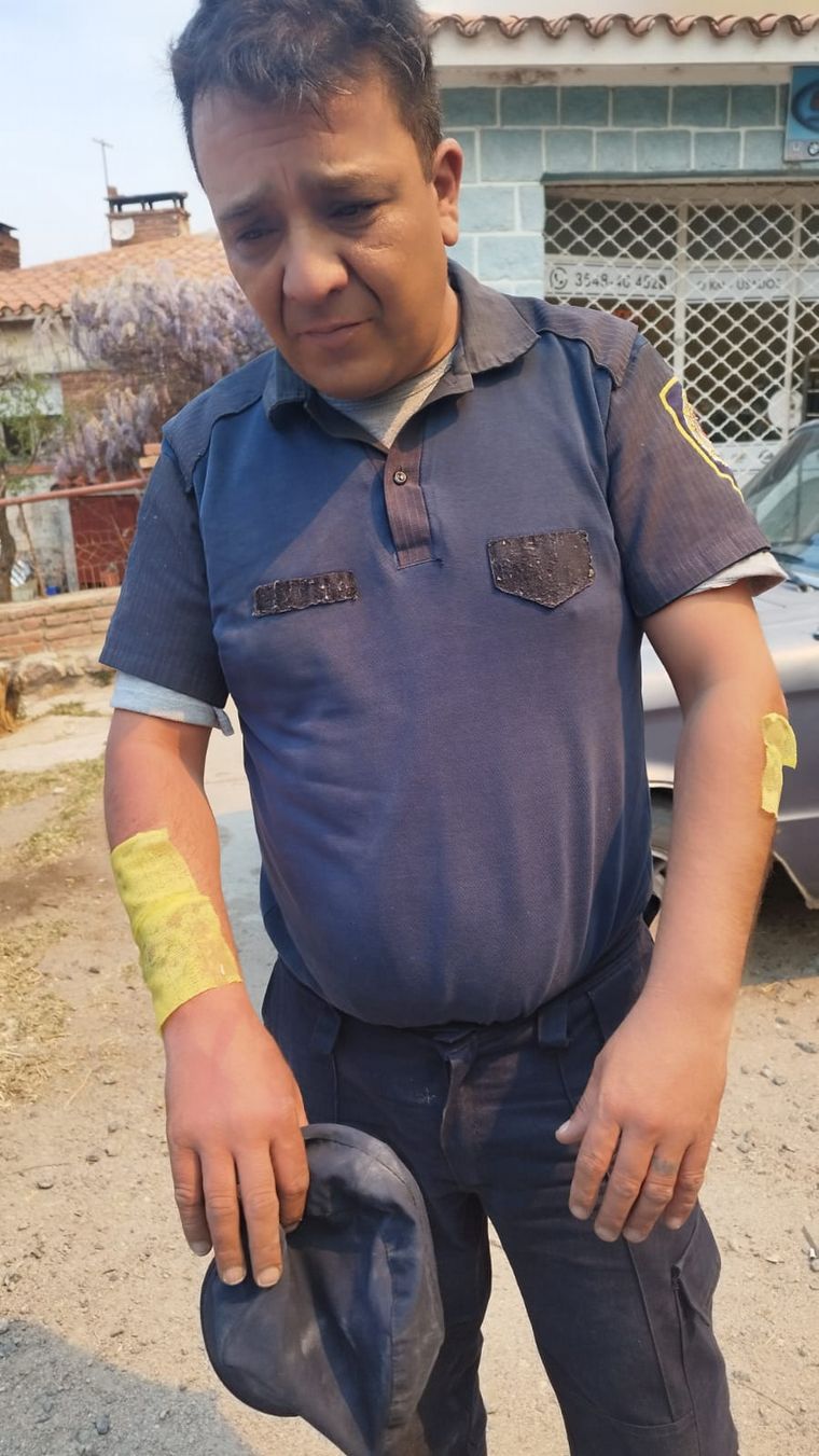 En tanto, el efectivo resultó con quemaduras de primer grado en sus brazos, por lo que fue trasladado hasta un nosocomio de La Falda para su asistencia.