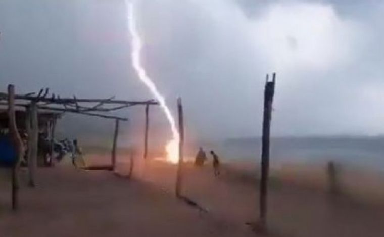 También se anunció que una tercera persona resultó lastimada ya que fue alcanzada por la zonda que generó el rayo en la arena.
