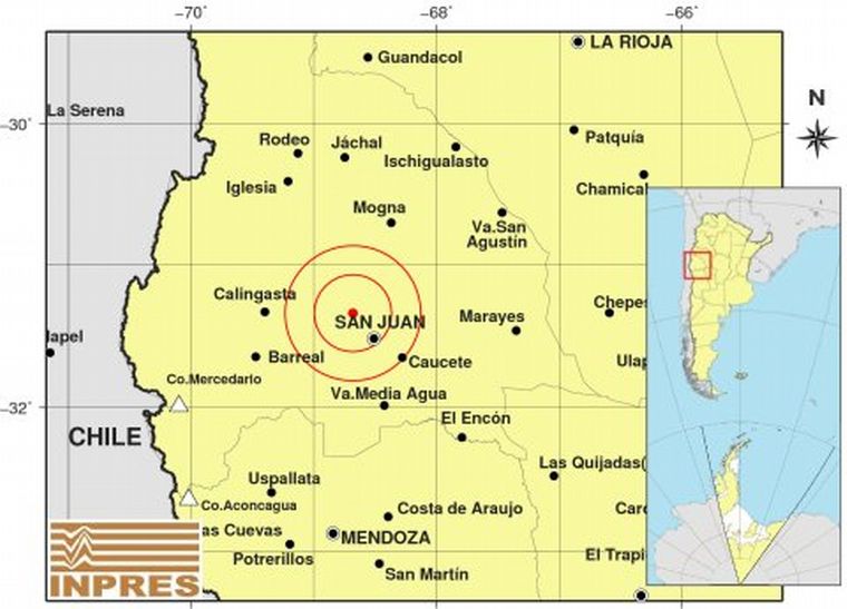 El Instituto Nacional de Prevención Sísmica (Inpres) informó que el temblor tuvo una magnitud de 3.5 grados en la escala de Richter y una profundidad de 107 kilómetros.