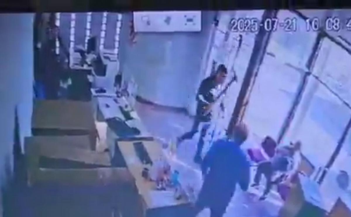 En cuestión de minutos, rompió varias computadoras, equipamiento de oficina y destruyó la vidriera que da a la calle. La situación generó gran conmoción entre empleados y transeúntes, que alertaron a las autoridades.