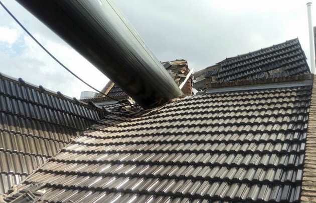 La caída de la grúa de varias toneladas de peso destrozó el techo de la casa, situada en la calle Saladillo, casi en la intersección con Pila.