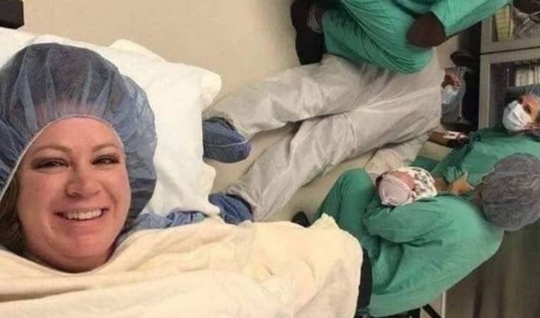 Pero el que no la pasó bien fue el flamante padre, quien se descompensó al asistir al parto de su esposa. En la imagen se lo observa inconsciente en el suelo del quirófano, mientras es atendido por tres médicos. Además, la foto retrata a una de las enfermeras cargando en brazos al recién nacido.