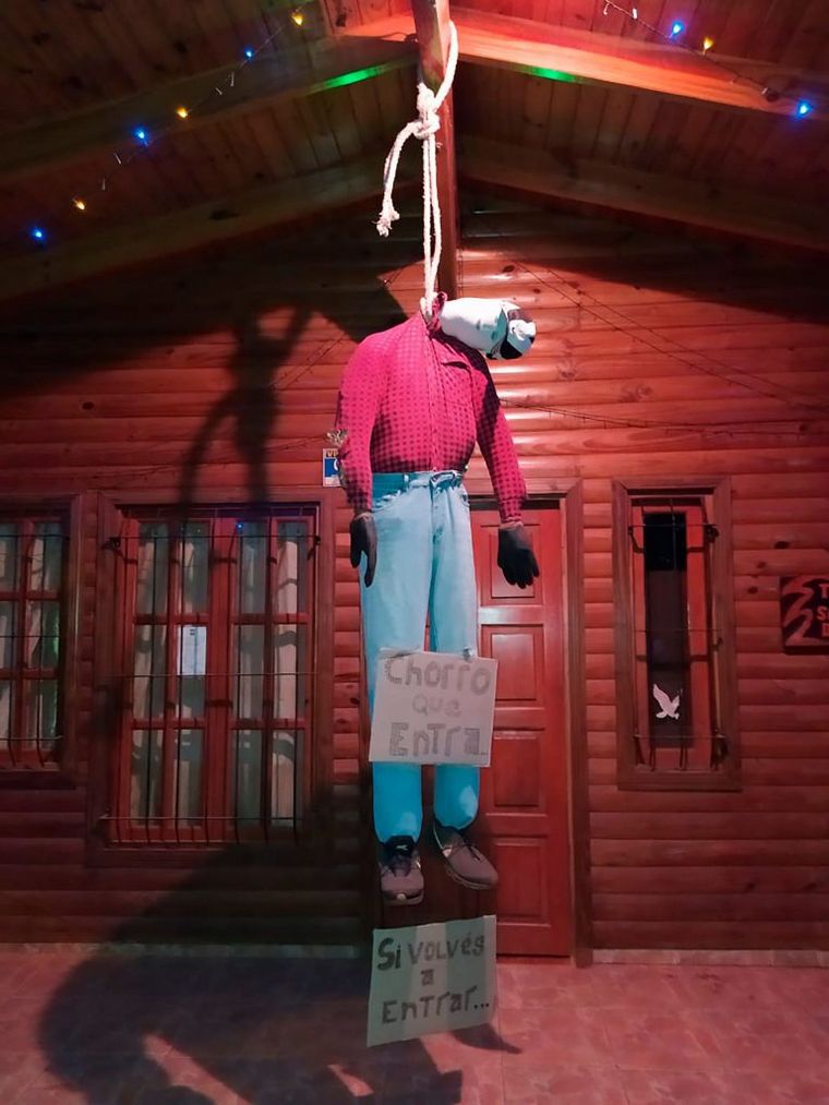 Habitantes de un barrio de Puerto Iguazú (Misiones) calificaron a abril como “el mes del afano”. Decidieron confeccionar réplicas que simulan ser delincuentes ahorcados y cuelgan frente a sus casas.