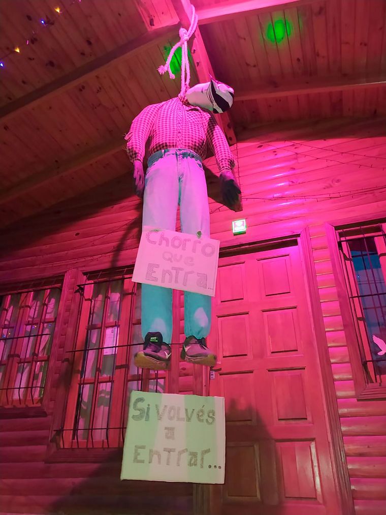 “Chorro que entra”, reza un cartel colgado junto al espantapájaros ahorcado que se utiliza para advertir a los malvivientes. Incluso, los vecinos buscan realizar un concurso en junio para definir la mejor representación.