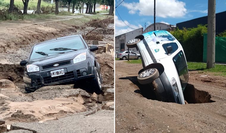 Varios vehículos fueron "tragados" este lunes por un cráter que se formó tras el temporal en avenida Rancagua, al 4700, en barrio Parque Liceo Tercera Sección, en la ciudad de Córdoba.