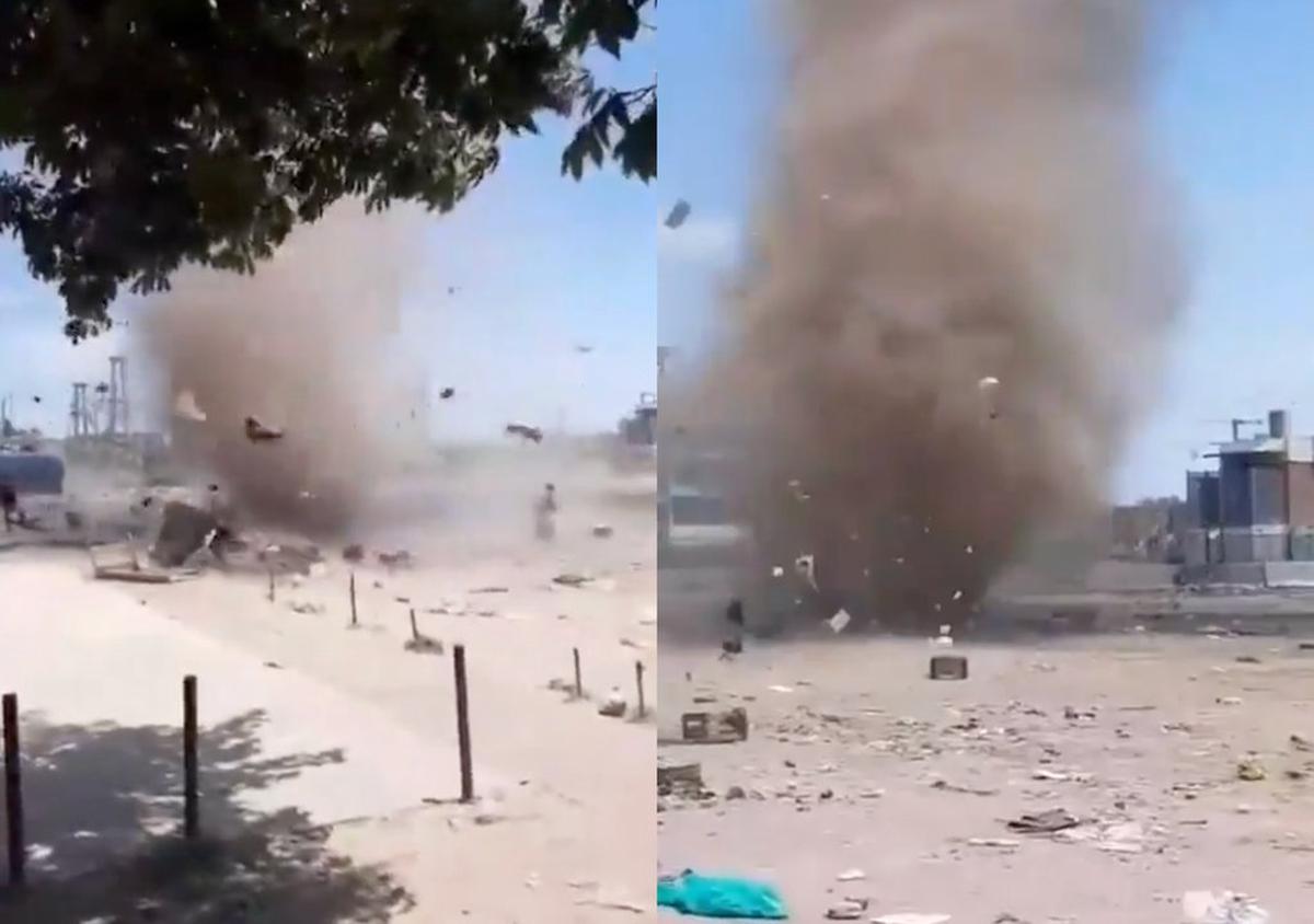 El hecho ocurrió en horas de la tarde, en medio de una jornada marcada por las altas temperaturas y la falta de humedad en el ambiente. En las imágenes se observa cómo la columna de polvo y tierra comienza a girar con fuerza sobre un terreno baldío, ganando altura y desplazándose lentamente ante la mirada atónita de quienes transitaban por la zona.