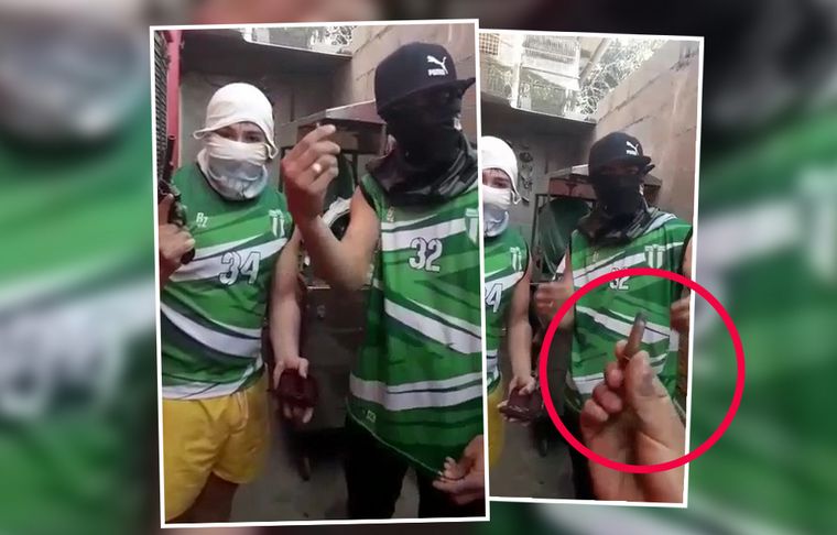 “Para los giles de All Boys, que no se vengan a hacer los locos ni los fuertes. Hay balas para cualquiera", dice uno de ellos, haciendo referencia al equipo al que enfrentaron el pasado fin de semana.