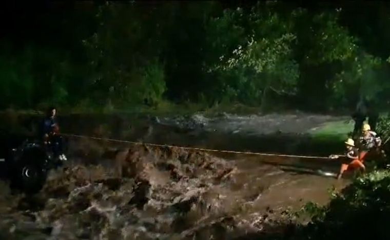 Videos: lo rescataron cuando su camioneta era arrastrada por el agua en Córdoba