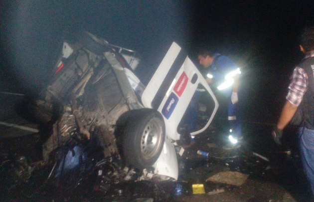 Colisionaron una Kangoo de Cablevisión y un colectivo de la empresa Manantial. El chofer de la camioneta murió, el de transporte está grave. Fue en la ruta nacional 34 a la altura del kilómetro 75.