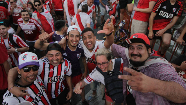 Una multitud de fanáticos de River se acercó al Patio Olmos, el tradicional punto de encuentro en Córdoba, para celeberar la cuarta Copa Libertadores de América.