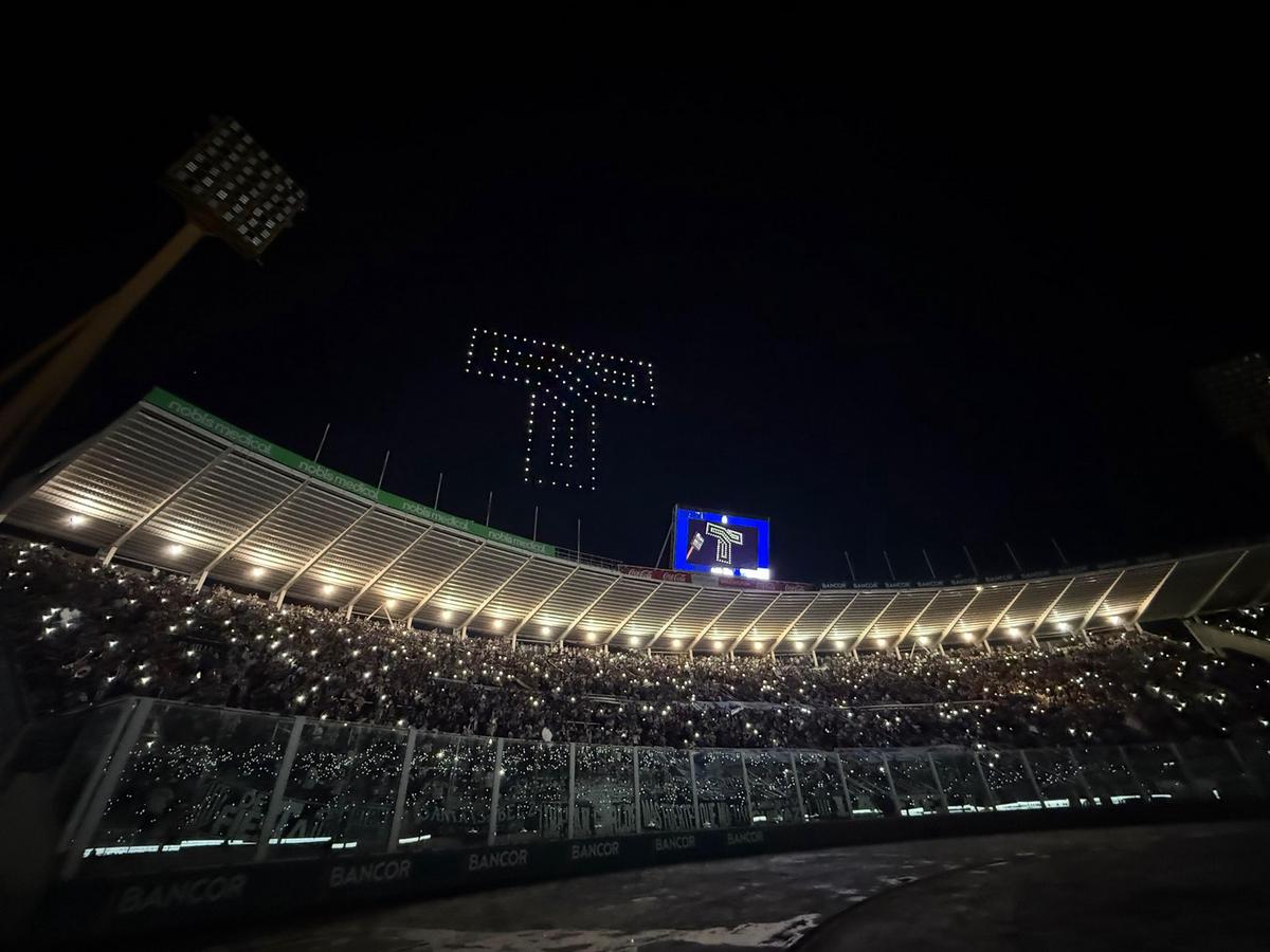 El espectáculo acompañó la salida del equipo al campo de juego y generó una atmósfera electrizante, con miles de hinchas alentando y convirtiendo la noche en una verdadera celebración.